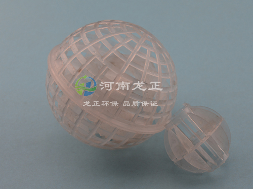 多面空心球,在球的中部沿整個周長有一道加固環,在環的上下各有十二片球瓣。上下球瓣互相交錯,沿中心軸呈放射形布置。具有重量輕、強度大、安裝方便、耐高溫(在140℃的環境中不變形)等優點,因此它在廢氣凈化、脫硫、脫二氧化碳氣體、廢水處理等行業中得到廣泛應用。